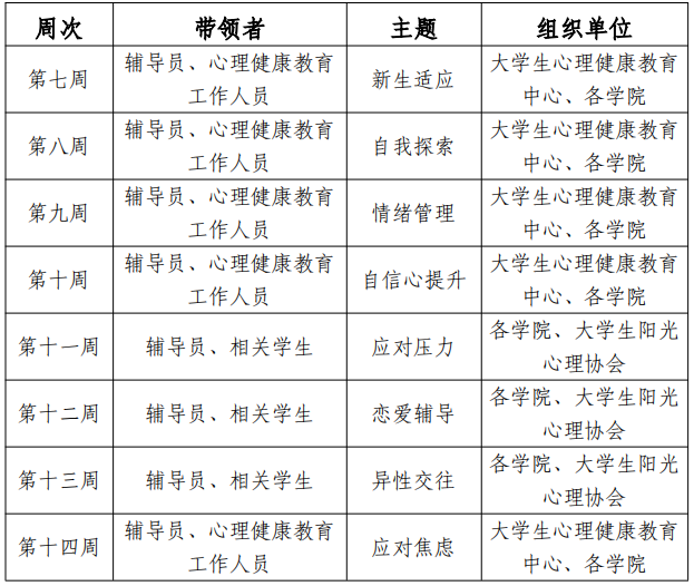 为帮助学生更好地适应大学生活,缓解可能存在的心理压力,建立良好的人际关系,塑造积极阳光的心态,高质高效地完成学业,学校顺利组织开展了2024-2025学年第一学期团体心理辅导活动。该活动以“赋能减压,向阳逐梦”为主题,由党委学生工作部主办,大学生心理健康教育中心、各二级学院以及阳光心理协会联合开展,共有100余名学生参加。