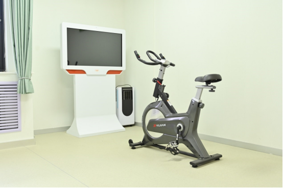 室内配备各种宣泄工具,如拳击袋、智能运动单车,通过提供一个安全、私密的环境,让人们可以自由地表达,以健康的方式宣泄情绪,减轻心理压力。智能运动单车训练系统主要分为运动减压区、心理舒展区、呐喊宣泄区三大模块。来访者可通过智能运动单车达到减压、舒缓身心的效果。反馈版VR放松减压系统可进行放松体验,并且连接血氧仪进行身心放松,实时检测心率等身体指标。