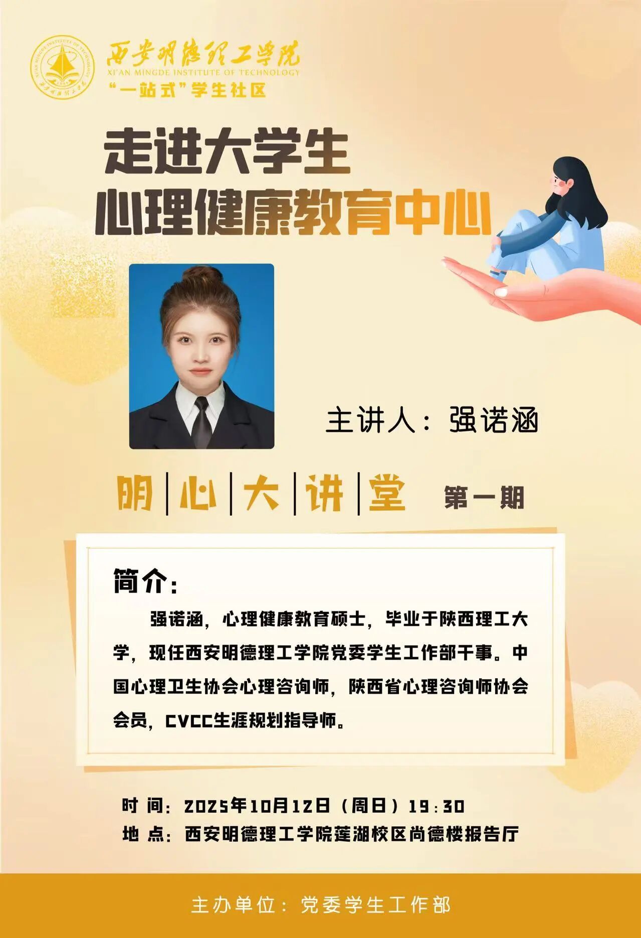 一、培训时间2025年10月12日 19:30二、培训地点beat365vip官网登录入口莲湖校区尚德楼报告厅三、报告会专家党委学生工作部 强诺涵 今晚我们不见不散~