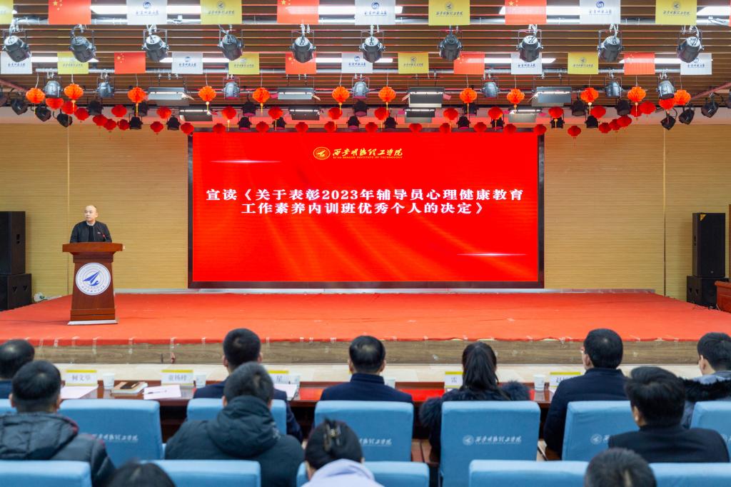 牢记嘱托勇前行,感恩奋进谱新篇。为有效提升辅导员心理健康教育工作素养,精心打造一支高素质、专业化的心理健康教育工作队伍,大力表彰在辅导员心理健康教育工作素养内训班表现突出的优秀个人,进一步调动辅导员参与心理育人工作的积极性和主动性,推动学校心理健康教育工作高质量开展,2024年1月4日上午,学校在建德楼203报告厅举行了2023年辅导员心理健康教育工作素养内训班结业典礼暨第二期心理咨询师培训班开班典礼。学校副校长白秦川、刘星出席会议,相关职能部门负责人,各二级学院党委书记、副书记、心理专干,大学生心理健康教育中心专兼职教师,全体学生工作干部参加会议。会议由大学生心理健康教育中心专职教师闫荣荣主持。