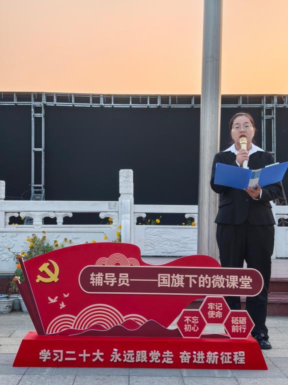10月14日,“辅导员说成长”——辅导员讲微课“树立远大理想,立志报效祖国”国旗下的微课堂爱国主义教育系列活动在学校中心广场举行,党委学生工作部老师、经济与管理学院师生代表参加活动。