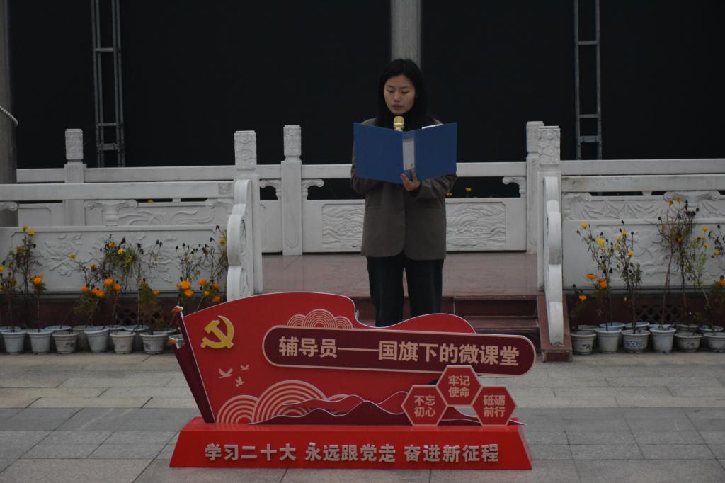 11月11日,“辅导员说成长”——辅导员讲微课“七十五载凌云志,蓝天之上起赞歌”国旗下的微课堂爱国主义教育系列活动在学校中心广场进行,党委学生工作部老师、智能制造与控制技术学院师生代表参加活动。