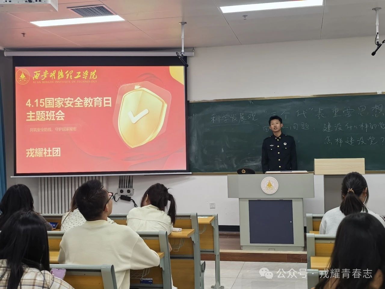 4月15日晚7点20分,在全民国家安全教育日之际,戎耀社团于七号楼802教室开展国家安全教育观宣传活动。此次活动由社团内退伍大学生走进教室,为同学们呈上了一堂干货满满的安全教育课。