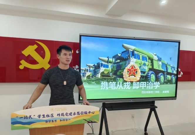 高曹骜同学作为优秀的退役学生代表,通过个人经历,参军经历,个人成长与考研经历四个方面,为同学们讲述了部分入伍政策、自己在入伍后的蜕变以及退役复学后的学习与生活感悟。分享了自己备考、择校、专业课复习、如何释放压力再到上岸的心路历程。