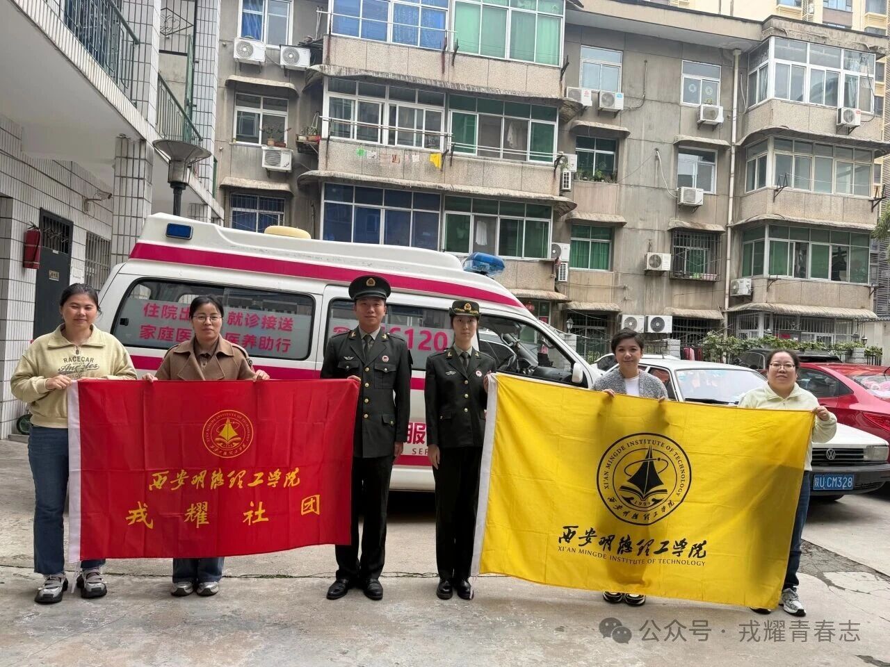 活动前期,戎耀国防教育中心精心筹划,联合相关单位配备医疗保障资源,为老兵提供健康保障服务。在充满时代印记的社区里,师生们与老兵亲切会面。120医疗保障车辆的暖心配备,既体现了活动组织的细致考量,更彰显了对老兵健康状况的重视,让慰问活动更具温度与保障。