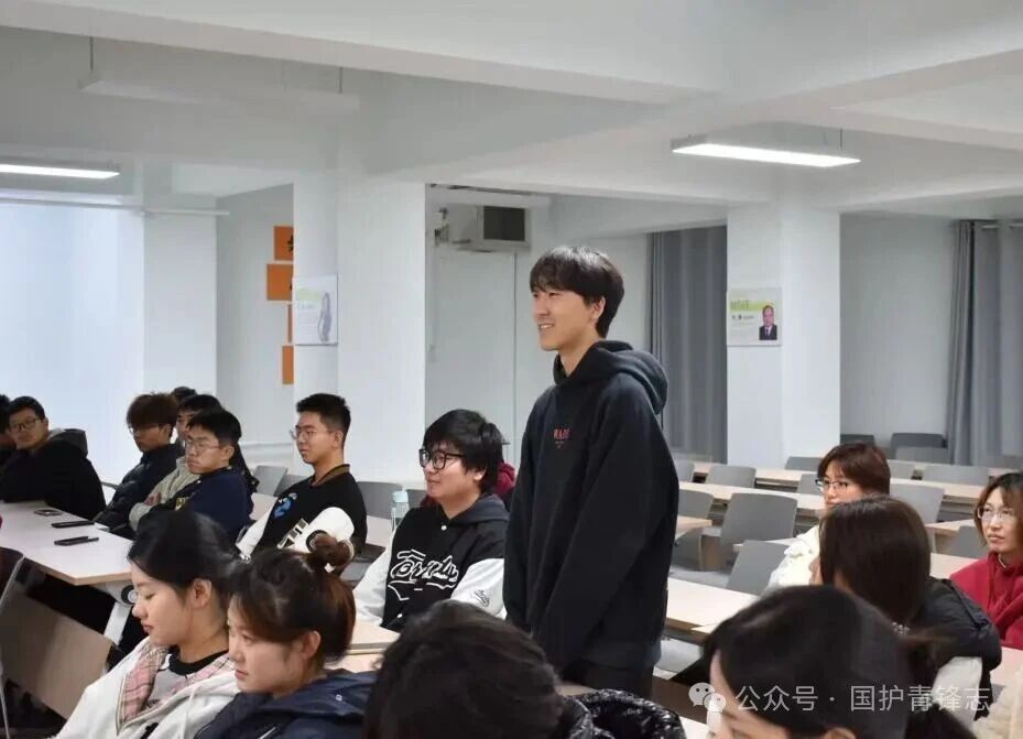 大一新队员接过话题,带着青涩与热忱完成了自我介绍。他们纷纷袒露加入国护的初心:有人是受家人从军经历的影响,有人是在军训期间看到国护队的升旗仪式等等。尽管加入队伍的时间不长,但他们眼中闪烁的光芒,已然诠释了对这份责任的期待与珍视。