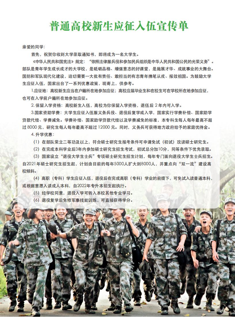 普通高校新生应征入伍宣传单