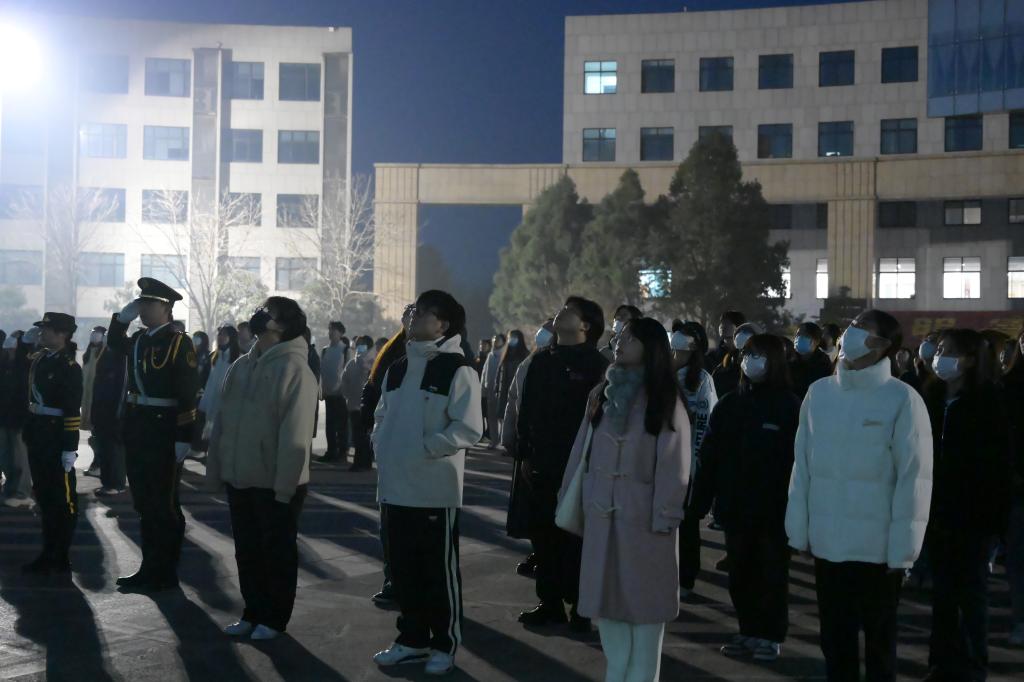 仲冬的明德校园,虽寒风瑟瑟,但语言文化传播学院师生却不畏寒冷,早已在中心广场整齐列队等待升国旗仪式和微课堂的开始。7时整,国旗护卫队护送着国旗迈着整齐而铿锵有力的步伐走向升旗台,伴随着高亢雄壮的《义勇军进行曲》,鲜艳的五星红旗在微风中冉冉升起,师生们心怀对伟大祖国的崇敬之情向国旗致以崇高敬礼。