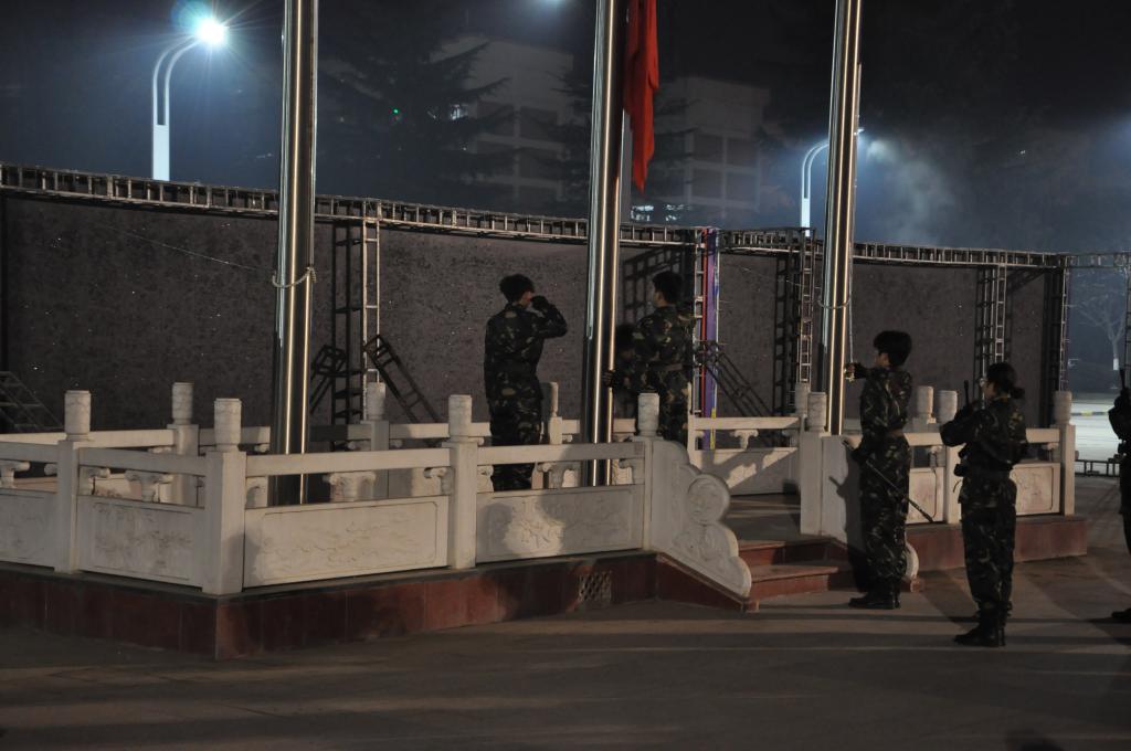 清晨的校园,气温低下,高等职业技术学院师生们不惧寒冷早已整齐列队在中心广场,静候升国旗仪式的开始。7时整,国旗护卫队护送着国旗迈着铿锵有力的步伐走向升旗台,伴随着激情昂扬的《义勇军进行曲》,鲜艳的五星红旗冉冉升起,师生们精神抖擞,豪情满怀向国旗致以崇高敬礼。