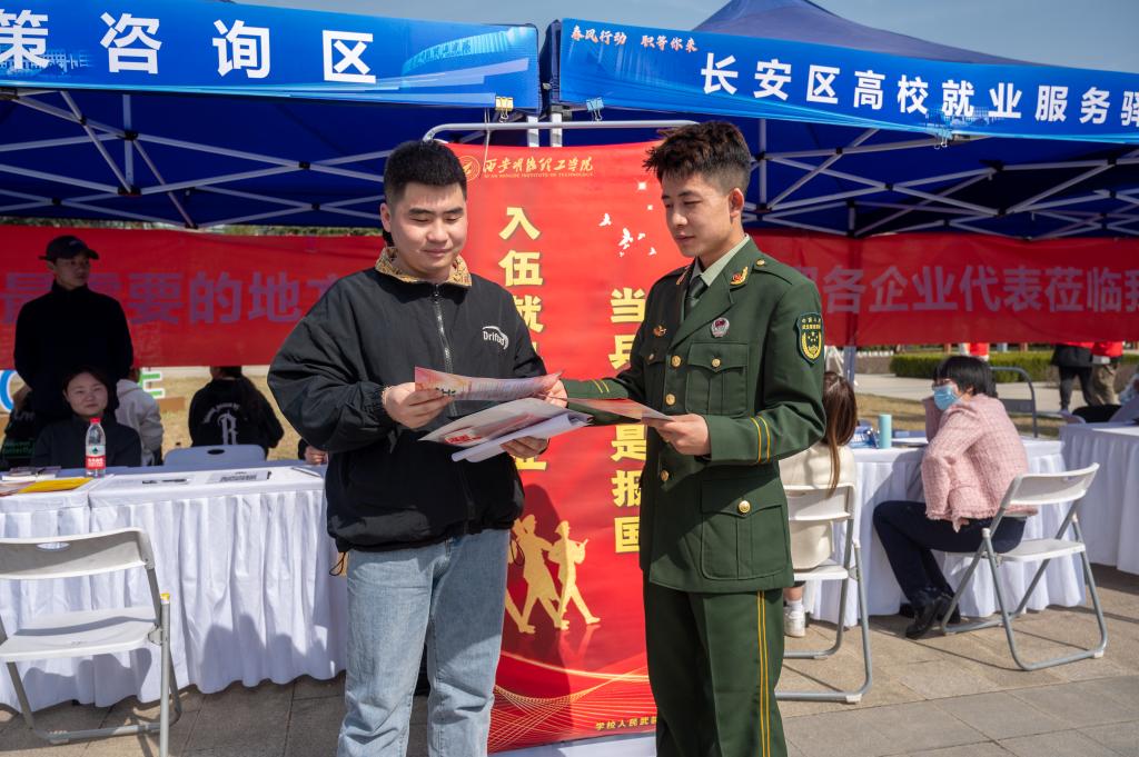 校人民武装部在招聘会现场设立大学生入伍咨询处,是学校推进毕业生就业和指导毕业生高质量就业系列活动的一部分。活动期间,人武部老师和退役复学的学生为前来咨询的同学们耐心解答,向他们介绍入伍相关政策,讲述部队训练故事,发放宣传资料,登记报名信息,建立入伍微信交流群等,吸引了较多学生前来询问和了解当兵入伍事宜,现场气氛活跃,交流充分,收到了较好的效果。