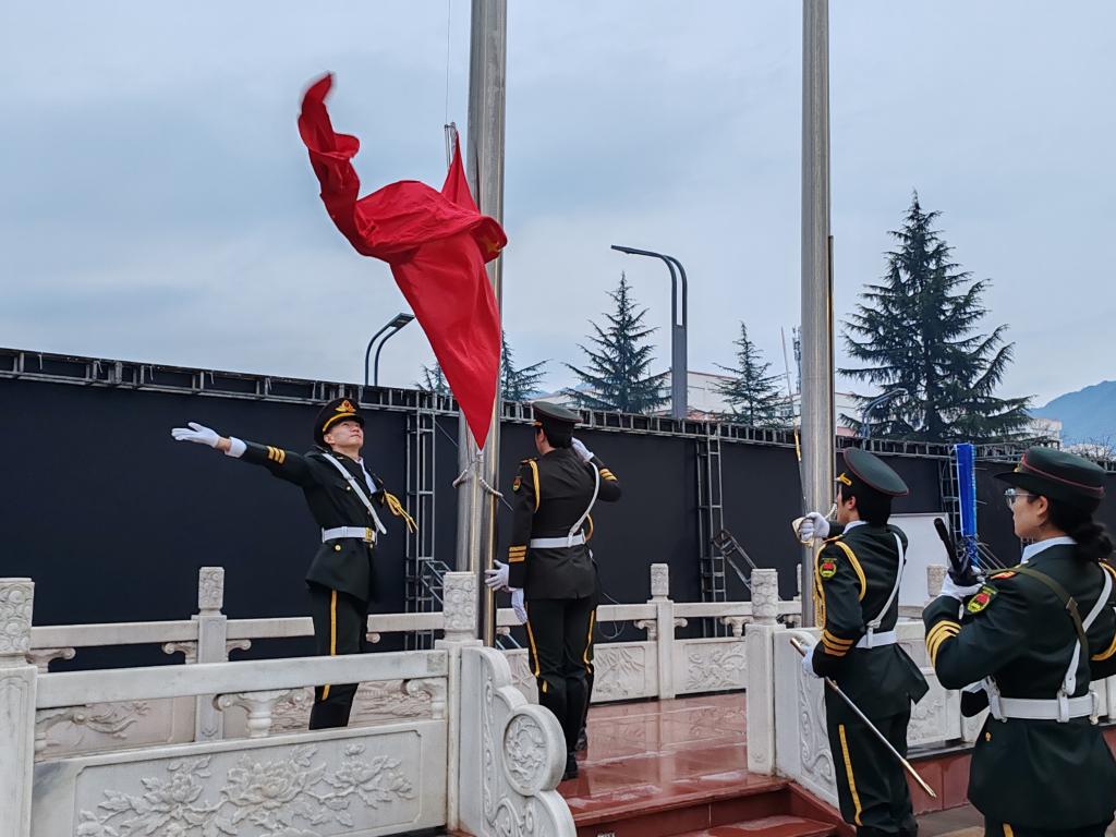 7时整,国旗护卫队迈着整齐而刚劲有力的步伐护送着国旗走向升旗台,伴着激情昂扬的《义勇军进行曲》,鲜艳的五星红旗冉冉升起,在微风中高高飘扬,师生们向国旗致以崇高敬礼。
