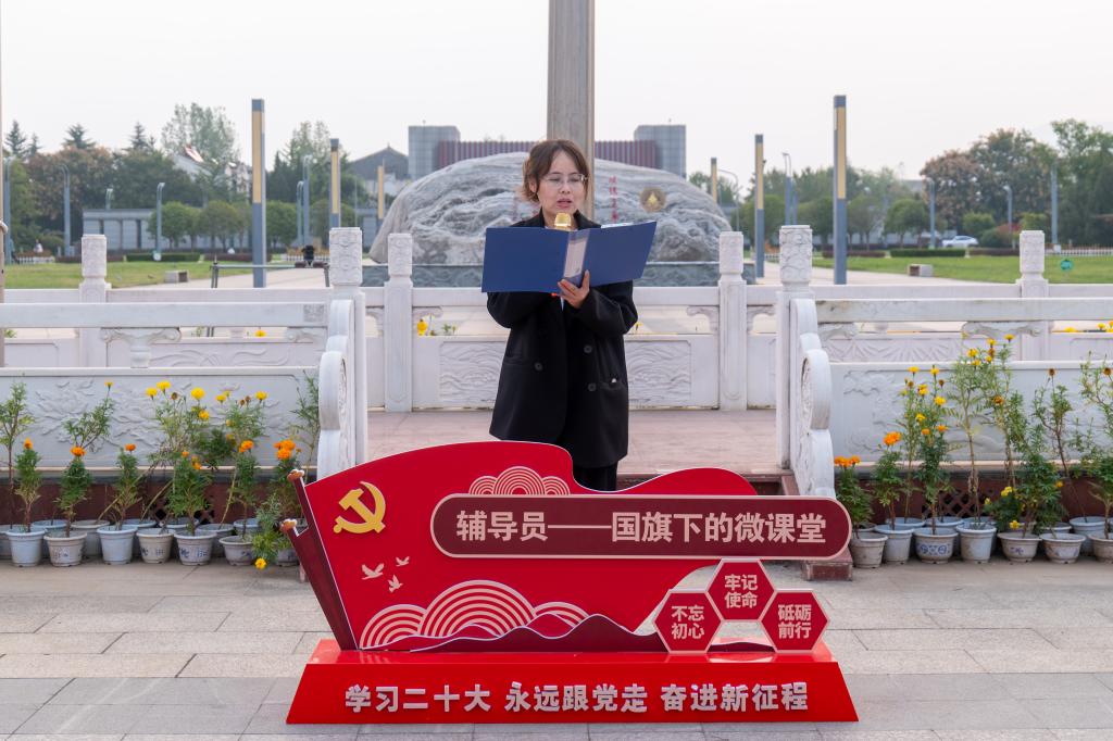 9月23日,“辅导员说成长”——开学第一期辅导员讲微课“启航新征程 逐梦新篇章”国旗下的微课堂爱国主义教育系列活动在学校中心广场举行,党委学生工作部老师、信息工程学院师生代表参加活动。