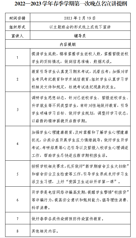 2022-2023学年春季学期第一次晚点名宣讲提纲