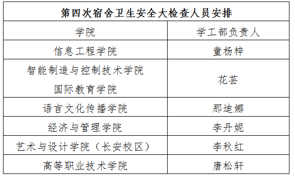 1.全体辅导员联合党委学生工作部进入学生宿舍,认真检查宿舍卫生并排查各类安全隐患,当日值班老师不再集合,北校区辅导员在值班老师处签到。