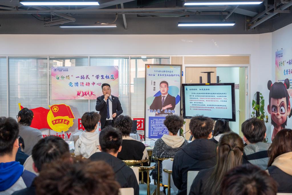 3月13日下午,在第43个“3·15”国际消费者权益日到来之际,由校团委主办、校学生会承办的“权小益”在行动—你的权益,我们共同守护主题沙龙在百合楼“一站式”学生社区党团活动中心举行。北京市百瑞(西安)律师事务所副主任鲁欢律师受邀主讲,100余名学生通过案例解析、互动答疑等形式,学习消费者权益保护知识,提升维权能力。