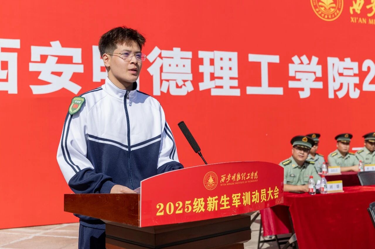 2025级参训新生代表赵麒弼,以“在青春的迷彩中书写成长答卷”的主题,表达了对军训的期待与决心。军训的哨声已经吹响,全体新生将以军人的标准严格要求自己,锤炼意志、增强体魄。也会以军训为起点,把阅兵精神装进背包,把明德校训刻进心里,迎接属于自己的“青春阅兵”。