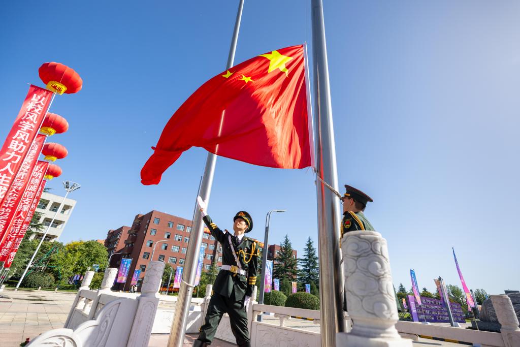 大会在庄严的升国旗、奏唱国歌仪式中拉开帷幕,全体师生肃立注目,激昂的旋律响彻校园。