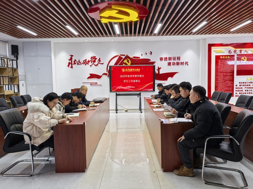 童杨梓作出具体部署,明确五项重点任务:一是做好学生离校管理,学生离校后辅导员需进宿舍检查,断水断电、张贴封条,并告知家长学生离校信息;二是强化高关怀学生管理,及时与家长沟通,严格把控请销假时间节点,落实闭环管理;三是规范开展辅导员考核测评与年底绩效核算;四是推荐开展学生工作研究课题申报工作,持续加强考风考纪教育;五是落实奖助贷发放工作,做好助学金等已发放项目的核对及安全教育工作。