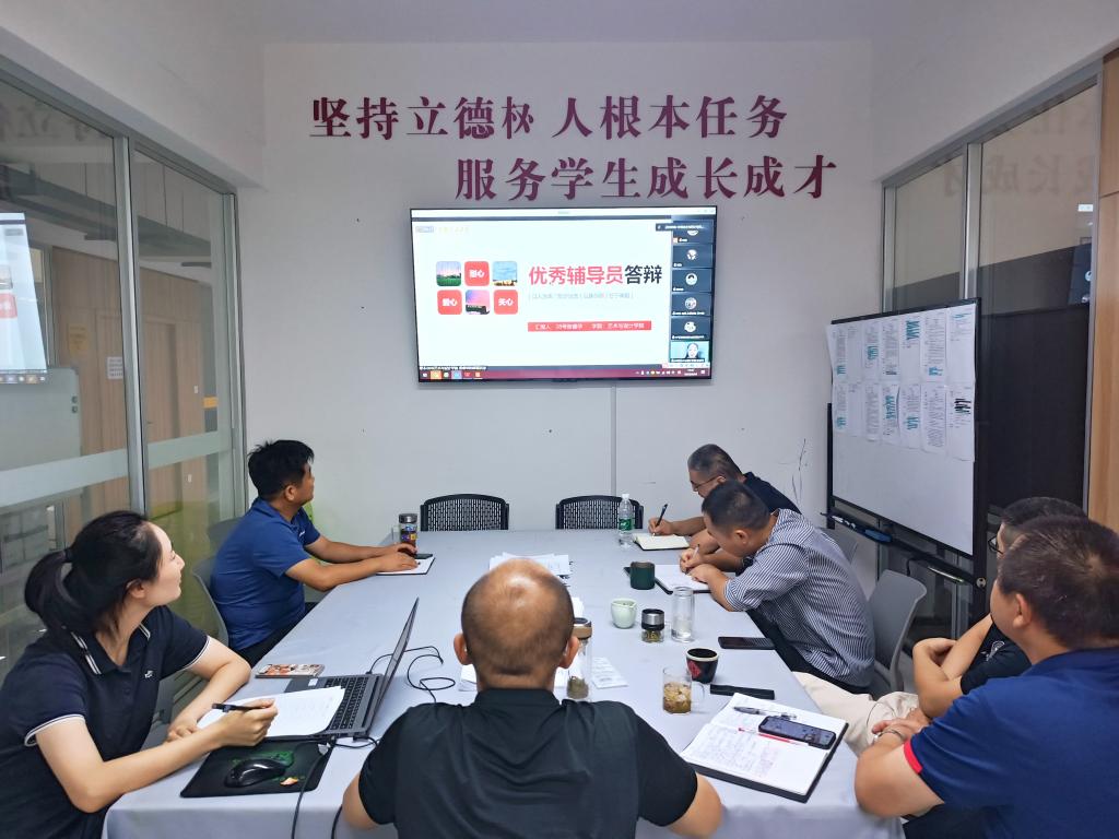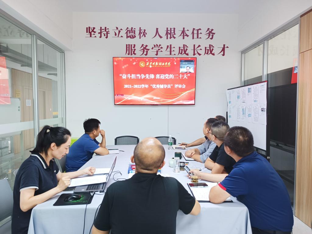 根据学校《关于开展2021-2022学年“师德标兵”“优秀教师”“最满意教师”“优秀辅导员”及“先进工作者”等评选表彰活动的通知》精神,由各学院推荐,党委学生工作部于2022年8月24日召开2021-2022学年“优秀辅导员”线上评审会,学校党委副书记董昊、教务处处长朱延波、招生就业中心副主任王东辉、人事处副处长康抗、图书馆(档案室、校史馆)副馆长强丽丽、各院党委书记以及党委学生工作部相关人员参加并担任评审。评审会由党委学生工作部花芸主持。