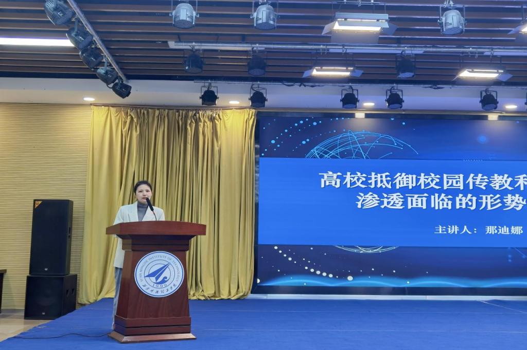 接下来,那迪娜作题为“高校抵制校园传教和防范宗教渗透面临的形势与任务”专题讲座。她讲到,作为高校辅导员要高度重视,提高政治站位,坚持不懈以习近平总书记有关宗教工作的重要讲话精神为指导,切实增强做好宗教工作的责任感和使命感,引导青年学生树立马克思主义“五观”,强化防范校园传教的意识,筑牢抵御和防范校园宗教渗透的思想防线,进一步净化校园文化。