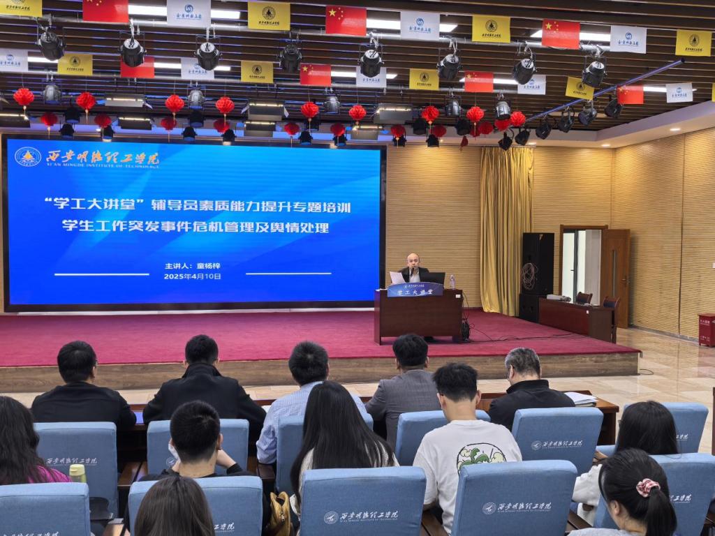 “以学促干强本领、守正创新筑防线”。为进一步提升学生工作干部应对校园突发危机和舆情事件的专业能力,夯实平安校园建设根基,营造良好的育人环境,4月10日上午,学校第三十七期“学工大讲台”辅导员素质能力提升专题培训在建德楼203报告厅举行。党委学生工作部副部长童杨梓以“学生工作突发事件危机管理及舆情处理”为主题作专题培训报告,全体学生工作干部参加培训。