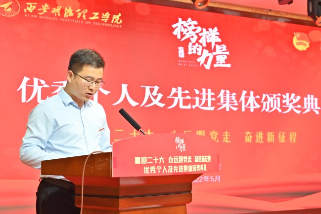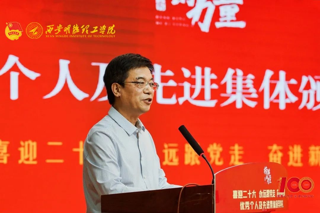 党委书记阎东明代表学校对受到表彰的先进集体和优秀个人表示热烈的祝贺,向长期以来辛勤付出的各位老师表示崇高的敬意和衷心的感谢,同时向同学们提出了三点希望:希望同学们坚持理想,志存高远。只有志存高远、坚毅果敢,不断在平凡的环境中淬炼不平凡的理想,才能真正成为有理想、有胆魄、有才华的优秀人才;希望同学们珍惜光阴,不负韶华。青年是学习的黄金时期,学习是青年的首要任务,“业精于勤而荒于嬉”,同学们正处于学习的黄金时期,应该把学习作为首要任务,惜时如金,刻苦学习;希望同学们修身明德、砥砺品性。品格是世界上最强大的动力之一,它是人生的支撑、生命的脊梁。一个品格高尚的人,可能不是最有权势和最有影响的人,但却因其高贵的品行而赢得最多的尊重,也必将成为拥有光明未来的人。