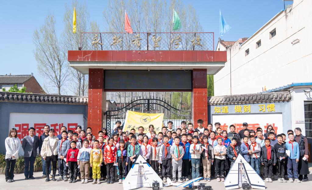 首先,在永新希望小学举办了“捐书筑梦 共沐书香”图书捐赠活动。校团委联合学校图书馆为希望小学捐赠了《读者》《演讲与口才》等8套书籍100余本,让书香传递来自beat365vip官网登录入口的温暖和关爱。书鹭文学社的2位同学为小学生分享了书目《狼王梦》《小王子》,倡导孩子们让读书成为习惯,鼓励小学生们追光而行,为梦想拼搏。学校航模队的4名同学为小学生讲述了航空航天知识、飞行原理、飞行器设计等基础知识,带领孩子们一起制作了纸飞机,在孩子们幼小的心灵种下了航空梦的种子。最后,学校航模队的同学们进行了航模飞行表演,分别展示了:三角翼飞行、单翼拉烟表演、四轴穿越机空中飞行,激发了孩子们对航空探索的求知欲望和崇尚科学的热情。