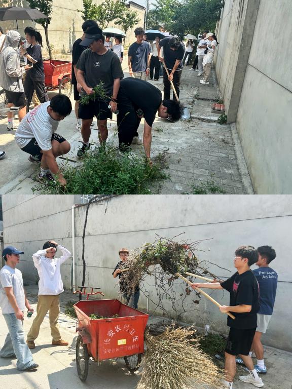 活动当天,烈日高悬,气温颇高,但学生党员们精神饱满、步伐坚定地朝着西留堡村行进。抵达社区后,在社区工作人员的引导下,大家迅速分组,明确了各自的清扫区域和任务,彻底清理积存垃圾、废弃杂物和卫生死角,为社区居民创造一个更加整洁、舒适的生活环境。