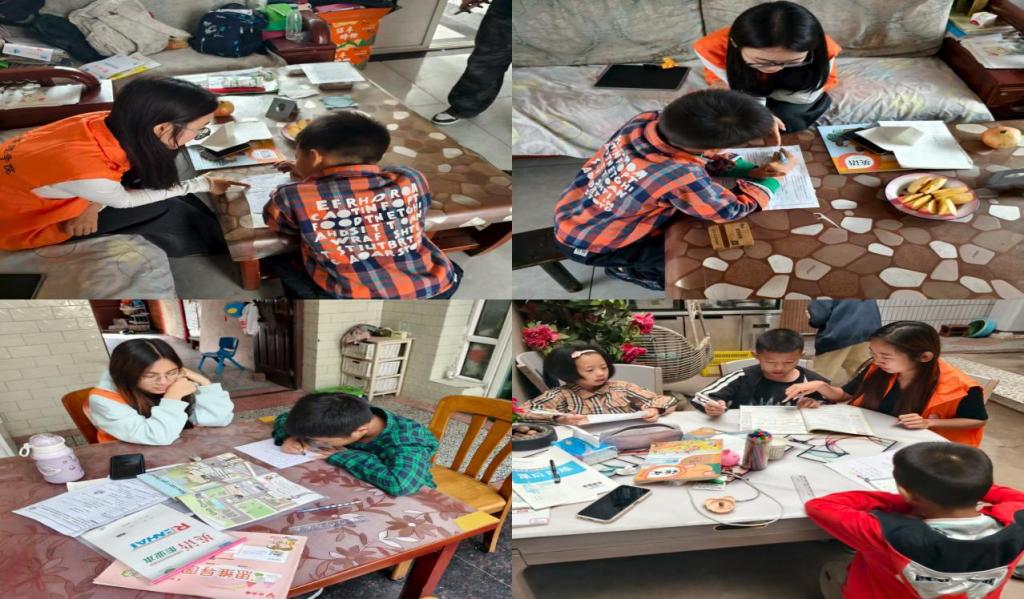 在活动筹备阶段,党支部书记罗夫惠与村、校共同开展精准摸排,筛选出需要学业辅导的学生,成立了学生志愿者服务队,为姚家滩及沣峪口村的学生提供学业援助。志愿服务队成员到达目的地立即开展入户帮扶,重点为村里学习困难的中小学生提供一对一学业辅导。辅导现场,大学生志愿者们结合自身学科优势,既当“解题老师”,又做“知识向导”。针对课本中的重点公式、文言文实词、英语语法等难点,用通俗的语言拆解讲解,手把手教学生梳理解题思路,逐题批改作业、标注易错点,家长们全程在场陪伴,看着孩子认真学习的模样,纷纷为志愿者们耐心负责的态度、专业扎实的教学能力点赞。