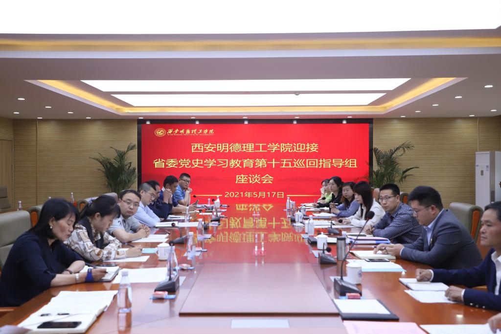 5月17日上午,陕西省委党史学习教育第十五巡回指导组组长赵军政、副组长李国武,成员曹振纲、陈旭华、韩同非、贺郁萱一行来beat365巡查指导党史学习教育工作。beat365党委书记阎东明,副校长庾鲜海、王斌宁,党委副书记董昊,副校长刘星,财务总监马晓军,纪检监察工作负责人狄忠胜参加汇报会。汇报会由校长杨健君主持。