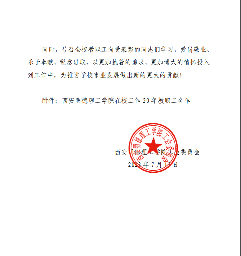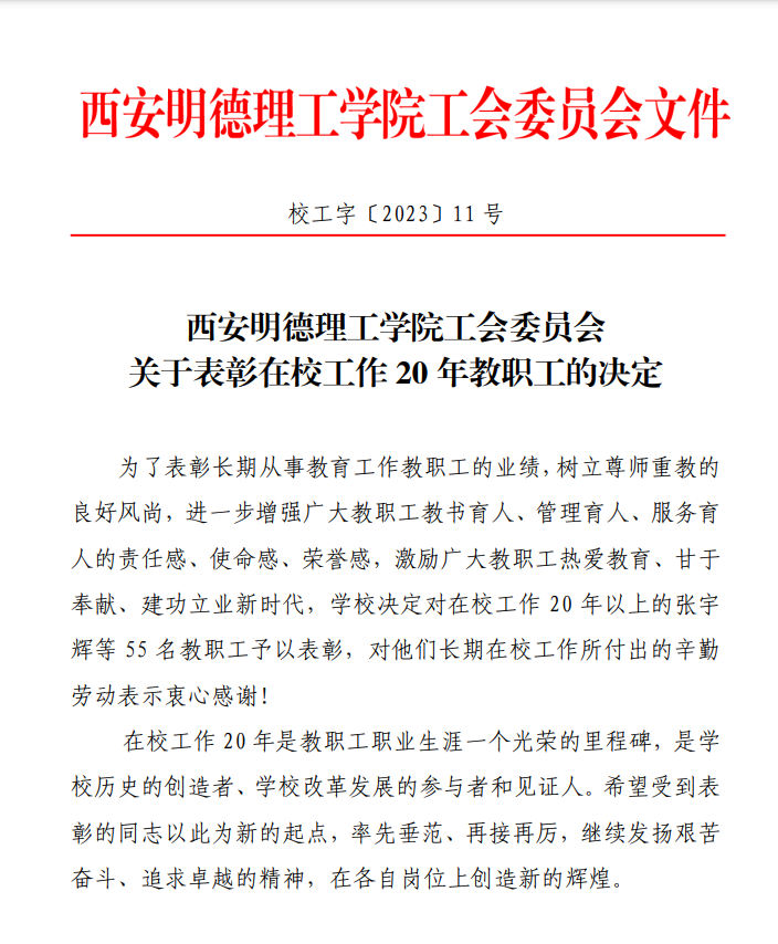 beat365vip官网登录入口工会委员会关于表彰在校工作 20 年教职工的决定