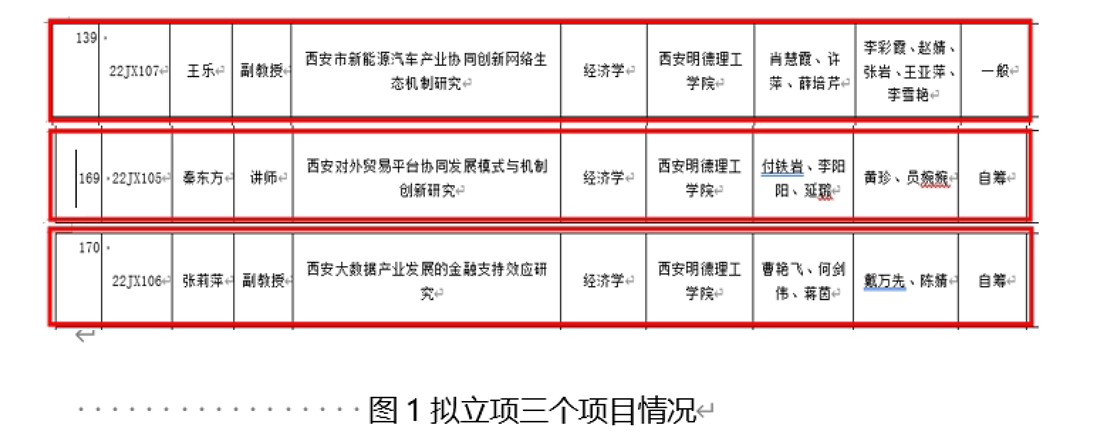 近两年,我院积极营造科研氛围,组织了多次科研研讨会、分享会,教师们参与科研课题申报的积极性明显提升。此次有9位教师作为课题负责人牵头申报西安市社科基金课题,40余人参与课题。经过了选题,撰写申报书,组内研讨,院内组织专家评审,修改申报书等环节。上报学校5项课题,经过校内专家评审,推荐了3项课题,全部通过西安市社科规划基金管理办公室组织的评审。此次课题通过评审,激发了教师们的科研热情,有利用持续推动我院开展科研课题申报、辅导、组织上报等工作。