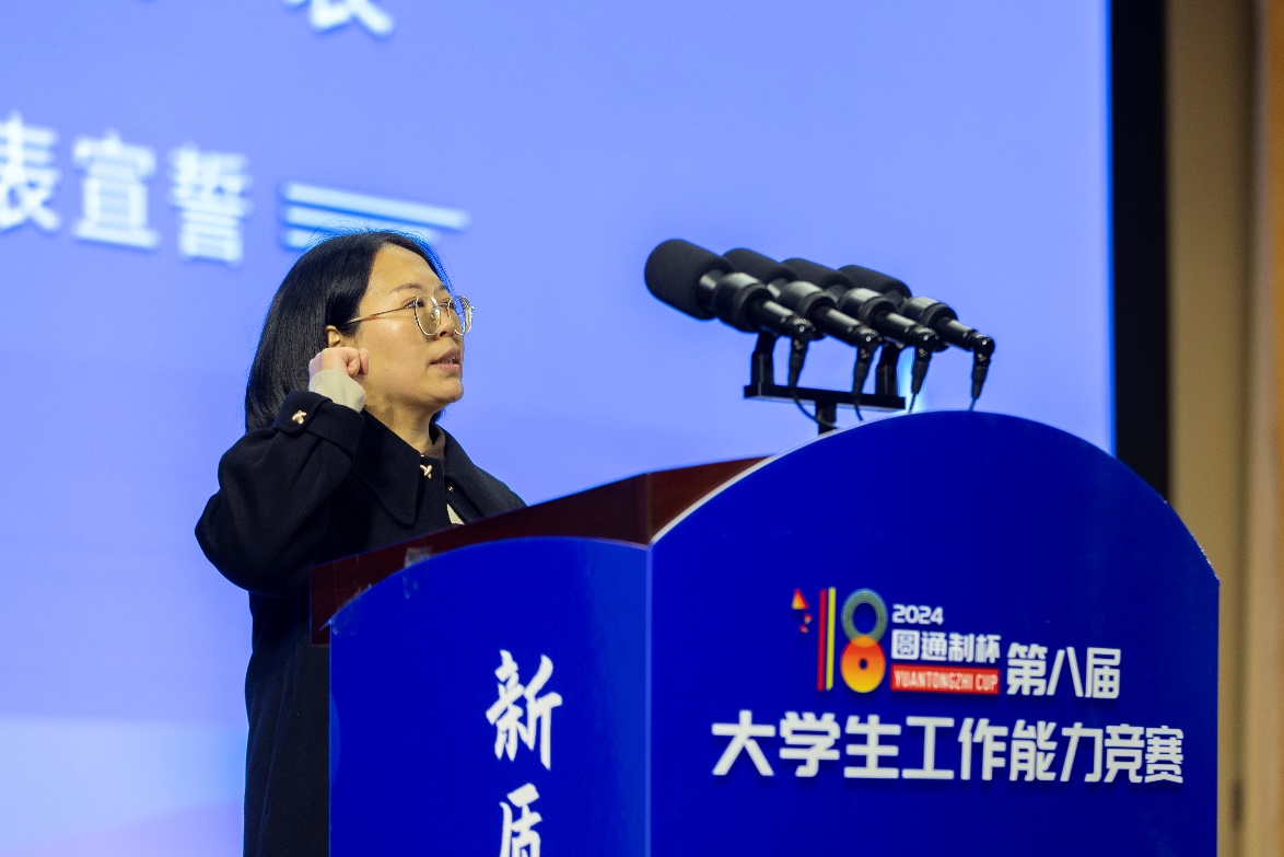 11月30日上午在学校四季廊桥报告厅拉开了本届竞赛决赛的帷幕。学校创新创业学院副院长崔岩主持了开幕式,经济与管理学院院长郭鹏教授代表学校致欢迎辞,陕西省中华职业教育社副主任、秘书长王彦平发表讲话,beat365vip官网登录入口经济与管理学院副院长许萍、教师康晓欢、学生杜莉婷分别代表参赛教师、裁判员及参赛学生进行宣誓,中国工作标准研究院院长、全国科学工作能力建设平台联席会理事长、圆通制创始人王民权宣布2024年度“圆通制杯”第八届大学生工作能力竞赛正式开始。