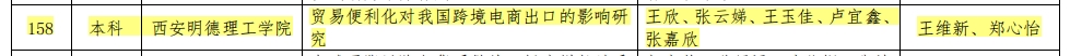 国际贸易与商务专题赛道主要面向国际经济与贸易专业或相关专业的研究生、本科学生和高职学生的理论研究型竞赛,通过论文写作方式,考察学生的理论功底、学科素养、写作水平、团队协作等能力。参赛团队结合当前国际经贸政策、国际财务金融、国际企业管理、国际营销和自由贸易协定应用等热点,选择其中一个主题,依据规定格式撰写一篇不少于2万字的应用研究型论文。经过专业教师地耐心指导、多次打磨修改,经济与管理学院学生王萍儿、韩梦琦、尹佳红和李跃的《数字普惠金融背景下农村跨境电商的发展机遇及对策研究》一文荣获一等奖。