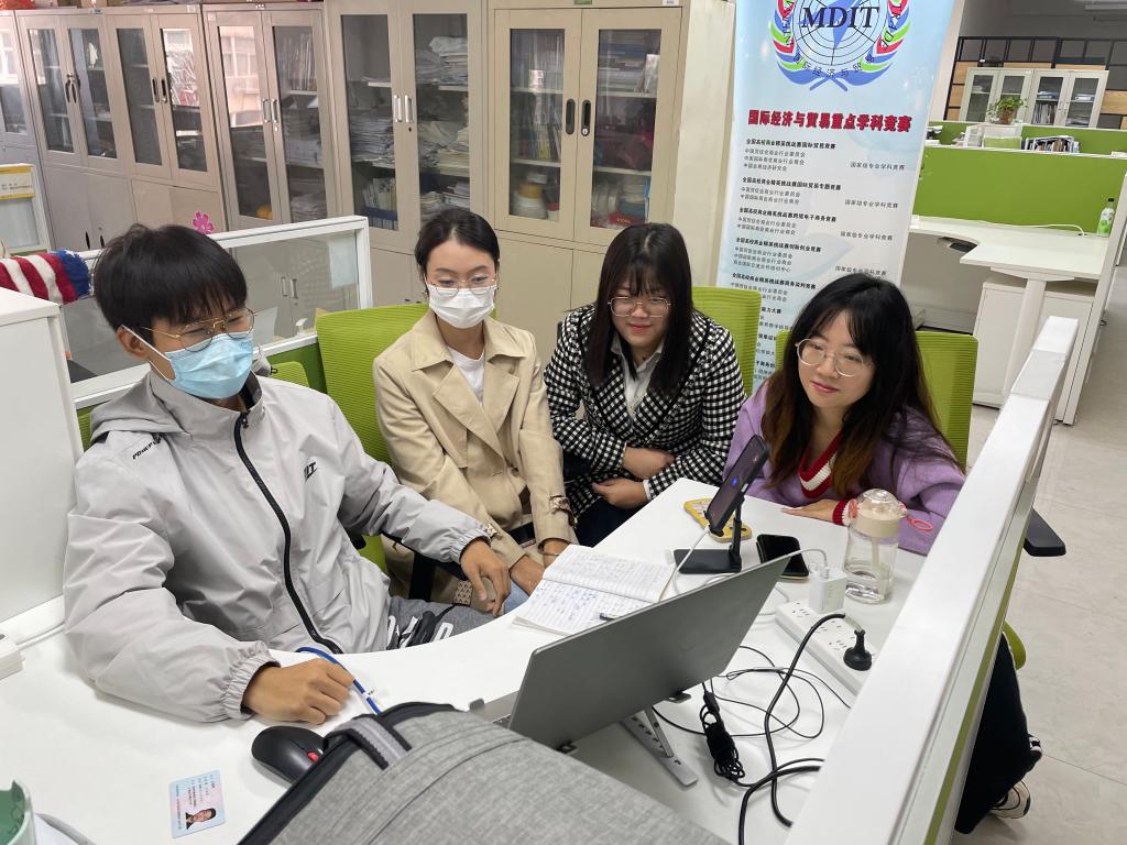 据悉,全国共有340余所高等院校的超1400支参赛团队进入决赛,8000余位辅导教师和参赛选手参加全国总决赛。beat365《Python自动分拣系统创造及应用》《“VR+模拟驾驶训练”在驾培行业的应用》《天使到家跨境母婴电商平台》《“盛世回声”文创世界》4组作品入围总决赛。10月23日上午,总决赛在线上举行,我院国际经济与贸易专业解蕾老师指导学生参加此次竞赛。比赛开始前,解蕾老师向学生详细介绍了此次竞赛的比赛流程和注意事项。比赛开始后,在老师的指导下,各代表队成员积极作答,展现出他们不凡的知识储备功底和充分专业的赛前准备。经过近四个小时的精彩博弈,最终本次比赛圆满结束。