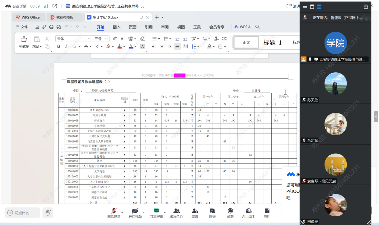 6月11日,经济与管理学院审计学专业以线上会议的形式召开人才培养方案行业专家论证会,厦门网中网软件有限公司区域经理鲁盛峰、技术顾问余定斌,陕西中鸿财税研究院负责人赵江波,高见元启(西安)财税咨询有限公司创始人、陕西华之鼎会计师事务所(特殊普通合伙)副所长、注册会计师袁贵琴,陕西兴华会计师事务所有限责任公司监事会主席、注册会计师周思彤等5位企业专家参加了论证会,审计学专业16名教师一同参会学习。