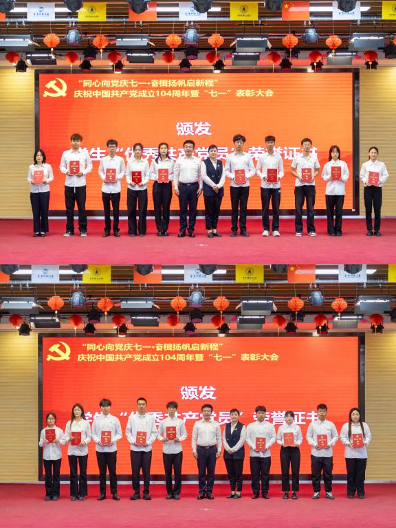 语言文化传播学院徐微作为教工优秀共产党员代表发言,她回望了自己近30年党龄和教龄的岁月,深情讲述了坚守为党育人、为国育才的初心使命,践行用外语讲好中国共产党和中国故事的光辉过往。信息工程学院熊丽丽作为学生优秀共产党员代表发言,分享了自己从参军入伍到退役复学的成长经历以及对“党员”二字的理解与感悟。经济与管理学院柴娜同学代表全体预备党员郑重承诺,将持续强化理论武装,锤炼过硬作风,勇担评估责任,切实把个人追求融入党和人民的事业之中。