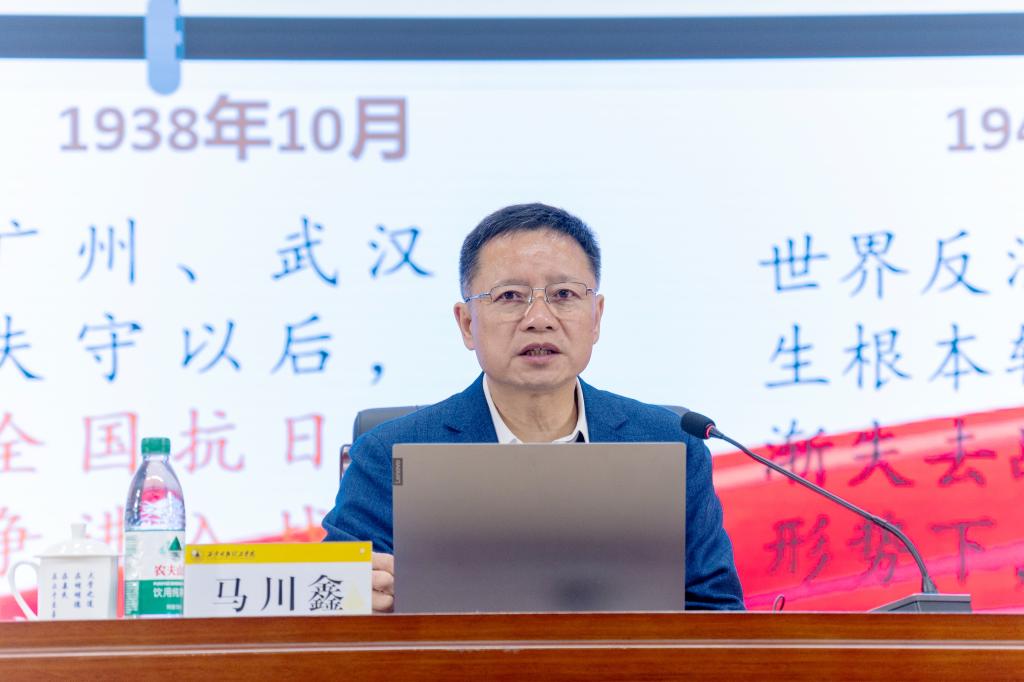 马川鑫以“以伟大抗战精神砥砺改革锐气 以四中全会部署引领复兴征程”为题,为全体学员讲授开班第一课。他从十四年抗战历史回顾的演变过程及伟大抗战精神的核心内涵、党的二十届四中全会的召开情况及主要成果、新时代青年的责任与担当等三个方面进行了讲解。同时,结合身边的典型案例,为青年学子如何担当时代重任、实现人生价值提出了殷切期望和明确要求。他指出,作为新时代追求进步的青年,一是要以史为鉴,自觉将伟大抗战精神转化为指引具体行动的“座右铭”;二是要以纲为循,切实把党的二十届四中全会精神内化为个人成长成才的“导航仪”;三是要担当尽责,立大志、明大德、成大才、担大任,自觉为强国建设、民族复兴的伟大事业,书写下无愧于历史、无愧于时代、无愧于青春的灿烂篇章。