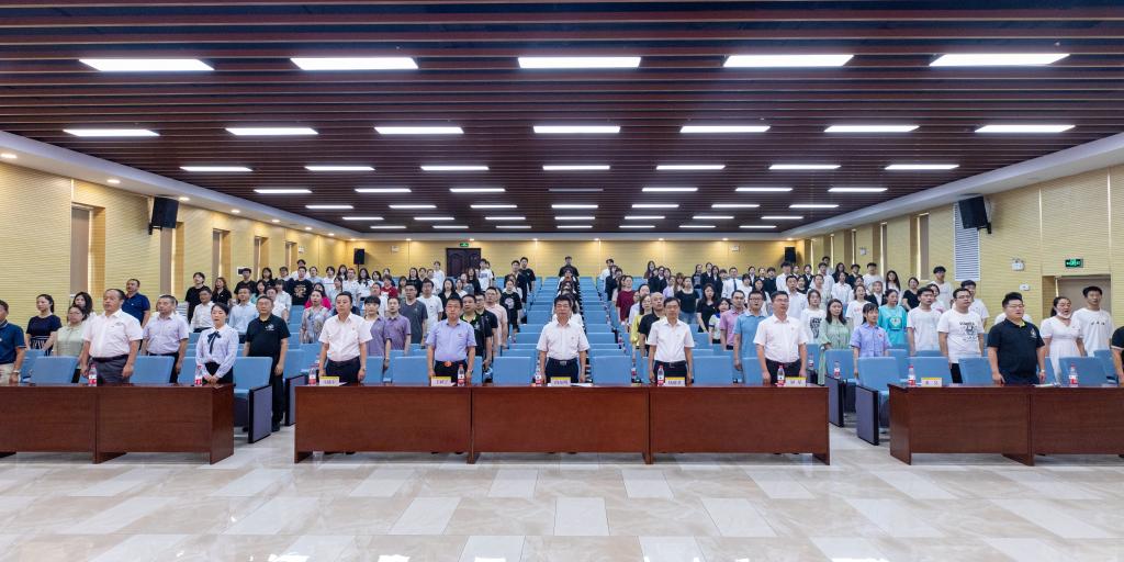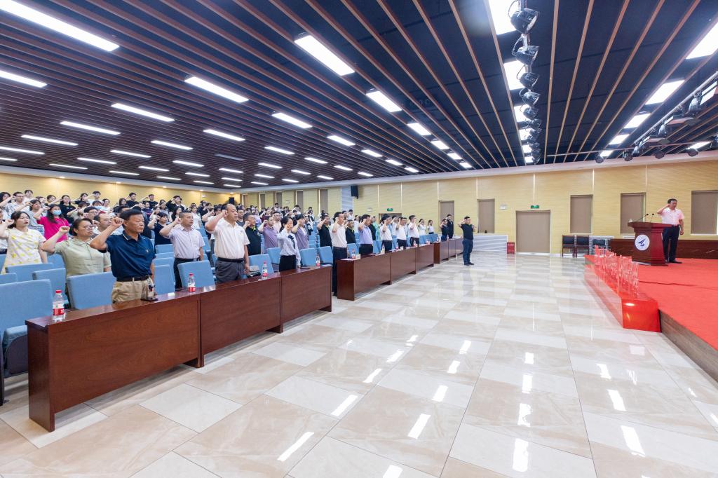 为庆祝中国共产党成立101周年,激励全体党员继承和发扬党的光荣传统和优良作风,进一步提升基层党组织的组织力凝聚力战斗力,7月1日下午,学校举行“喜迎二十大 永远跟党走 奋进新征程”庆祝中国共产党成立101周年暨新党员入党宣誓大会。全体校领导、各基层党组织书记、光荣在党二十年以上党员代表、预备党员代表等参加了会议,会议由学校党委副书记董昊主持。