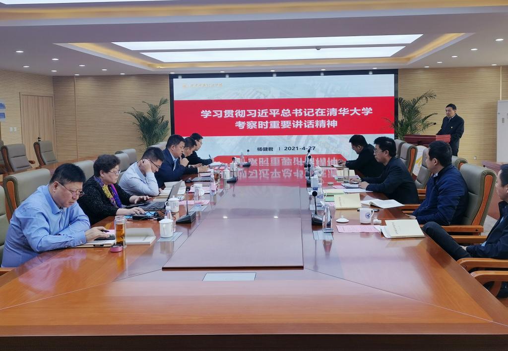 杨校长首先带领大家一起学习了习近平总书记在清华大学考察时重要讲话精神。重点学习了习近平总书记讲话中对高等教育的重要论述、建设中国特色世界一流大学、培养德智体美劳全面发展的社会主义建设者和接班人、对广大青年的期望等方面内容。