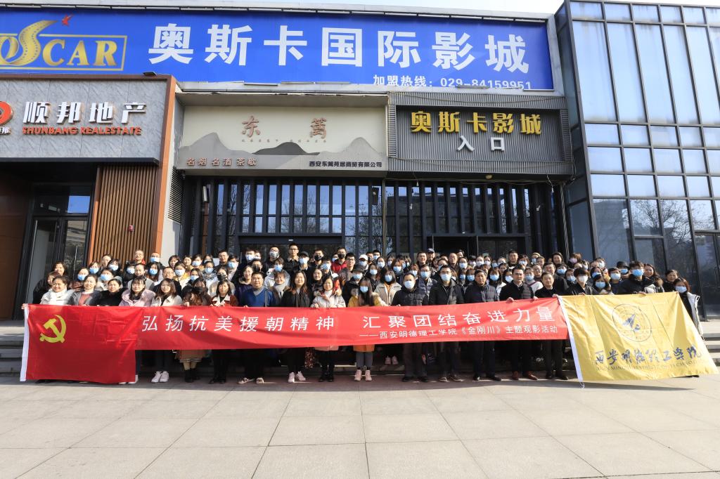 《金刚川》为纪念中国人民志愿军抗美援朝出国作战70周年拍摄,讲述了抗美援朝战争中志愿军在敌我力量极其悬殊背景下,以血肉之躯一次次修补金刚川木桥的故事,生动再现了志愿军战士们为了在指定时间内通过金刚川、冒着敌人的狂轰滥炸、用血肉之躯最终架起一座“人桥”、让增援部队成功抵达金城的壮举,展现了志愿军战士临危不惧、视死如归的革命英雄气概。观影中,大家被中国人民志愿军战士的英雄壮举所震撼,不少师生流下了感动的泪水。