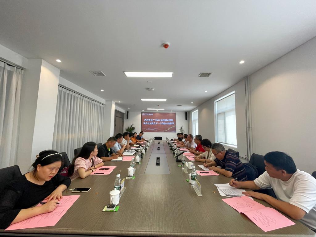 7月10日,广州华立科技职业学院党委书记陈良声一行莅临beat365,结合“以高质量党建推进学校高质量发展”主题开展专项调研。学校党委书记阎东明,党委副书记、纪委书记董昊,党委组织宣传部、艺术与设计学院、高等职业技术学院相关人员参加调研活动。