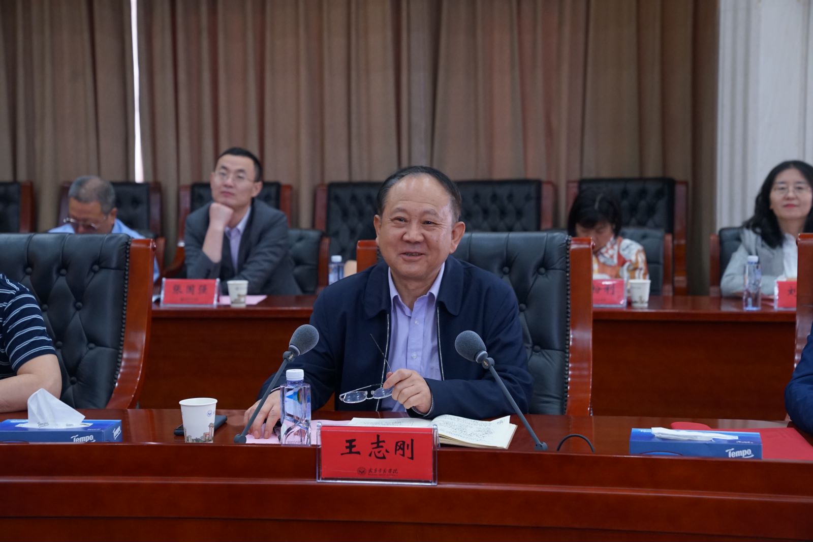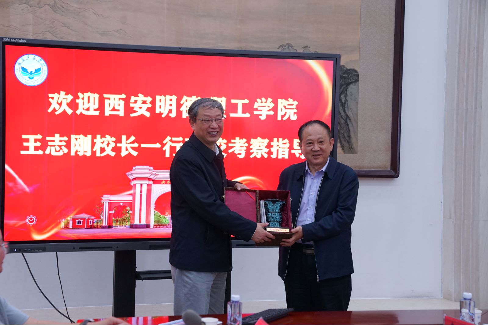 座谈会上,武昌首义学院李崇光校长对beat365表示热烈欢迎,热情地介绍了学校历史沿革和迎评促建工作。王志刚校长对武昌首义学院热情接待表示感谢,介绍了beat365的办学历史、办学特色、办学优势、当前任务和发展目标等情况。希望通过学习武昌首义学院先进的评建工作经验和做法,促进学校评建工作有序开展。全体人员观看了武昌首义学院宣传片,全面了解了学校办学起源、发展历程、育人理念、教学改革、师资队伍、专业建设、校企合作、科学研究、校园文化、办学实绩。会后,王志刚、李崇光校长代表两校互赠纪念品。