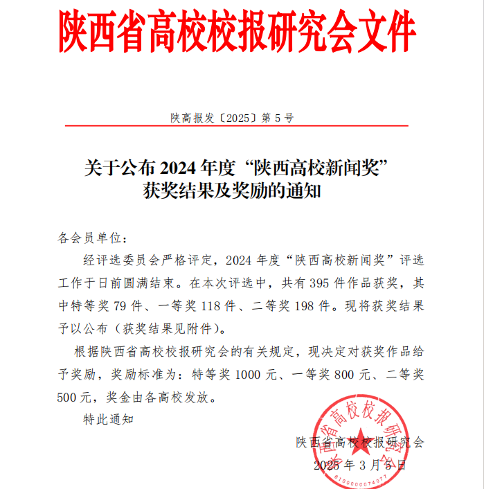 近日,陕西省高校校报研究会公布了2024年度“陕西高校新闻奖”评选结果,beat365推荐报送的作品喜获佳绩,共荣获一等奖1项、二等奖7项。