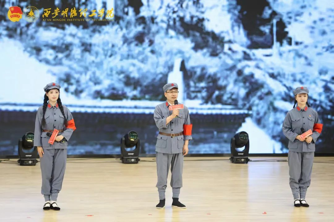 延安市宝塔区第四中学马龙、宝塔区融媒体中心邢雨甜、宝塔区交通运输局雷伊珊表演情景剧《永不消逝的声音》。你是撼动五岳的黄钟大吕,激荡着民族奋起的呐喊;你是唤醒心灵的天籁回声,高唱着民族崛起的旋律;你传播民族不屈的宣言;你赞美新中国无尽的希望。