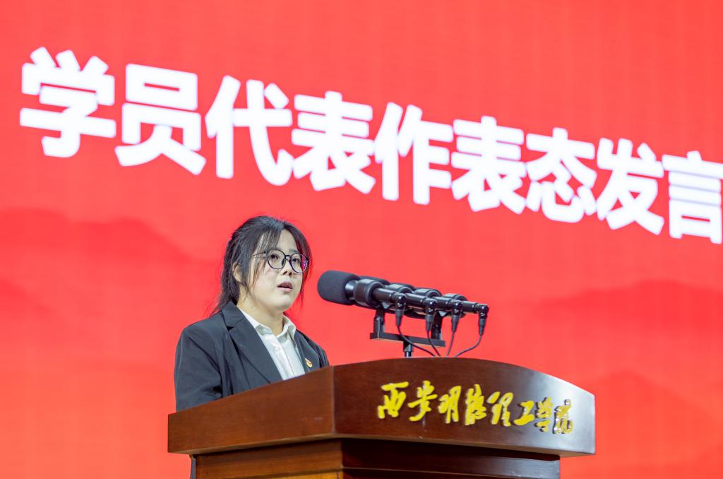 信息工程学院张思甜作为学员代表发言。她表示青年应坚定理想信念,听党话、跟党走,号召全体学员要学而思、思而行、行而悟,以饱满的热情、严谨的态度、务实的作风完成培训任务,为实现中国梦贡献力量。