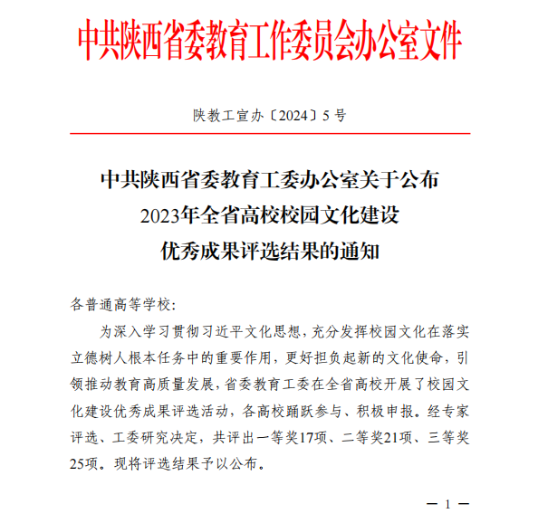 学校获2023年陕西省高校校园文化建设优秀成果三等奖