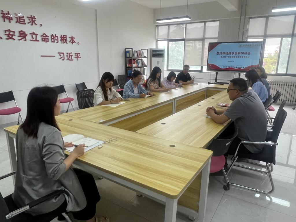 2025年5月14日中午,习近平新时代中国特色社会主义思想概论教研室在明志楼南306会议室举行品牌课程教学创新研讨会,研讨会由教研室主任周蓓蓓主持,课程组全体教师参加,会议主要围绕如何推进构建《习近平新时代中国特色社会主义思想概论》线上线下混合式教学模式展开思路和方法的探讨。