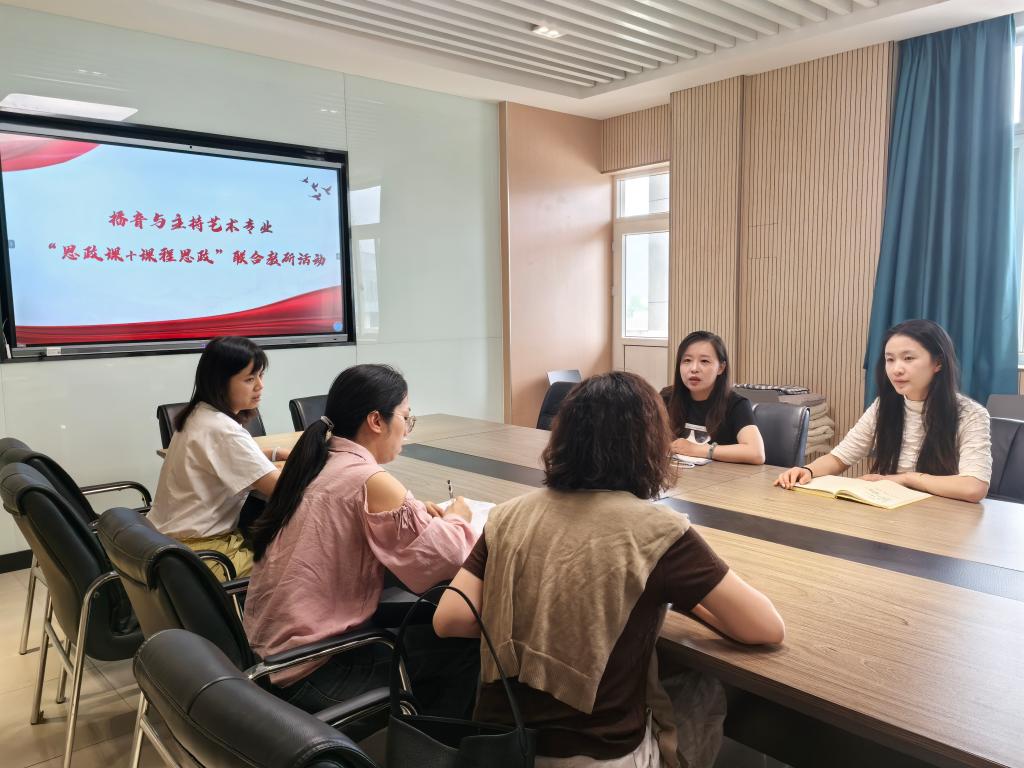 为深入推进课程思政与思政课程同向同行,共同挖掘思政素材,互促互进,实现有针对性和实效性的思政育人。2025年5月14日,马克思主义学院毛泽东思想和中国特色社会主义理论体系概论教研室与艺术与设计学院播音与主持艺术专业开展课程思政建设专题研讨会。艺术与设计学院办公室主任吴君老师、播音与主持艺术专业负责人姚璐老师、张文挺老师,毛泽东思想和中国特色社会主义理论体系概论教研室主任龚玲和马克思主义学院教学督导贾妍老师共同出席了此次会议。双方就如何解决学生对思政课程重视不够、兴趣不浓,专业课思政元素融入不足、融入生硬,校园思政文化氛围特色不够鲜明等问题展开深入交流,共商协同育人新路径。