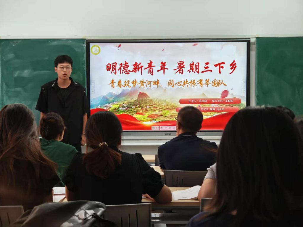 在答辩环节中,各团队负责人紧紧围绕暑期“三下乡”社会实践主题,重点展示了微电影创作与思政课宣讲两大特色板块。通过图文并茂的演示,系统性地汇报了项目的前期调研、创意策划、实施路径、特色创新及预期社会效益等内容。